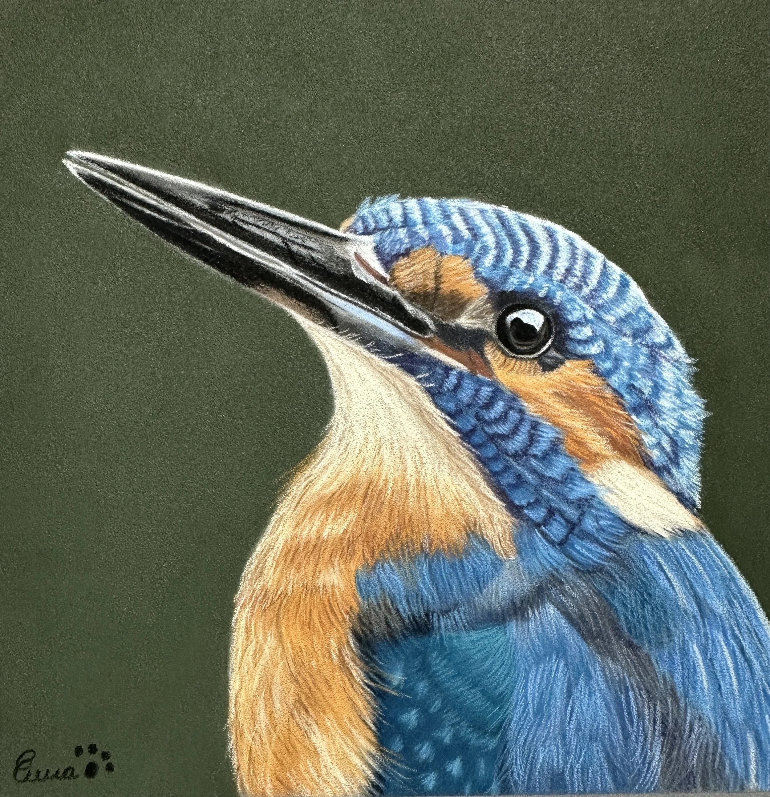 A portrait of a male Kingfisher. Painted from a beautiful reference photo from Debbie Anne Photography.